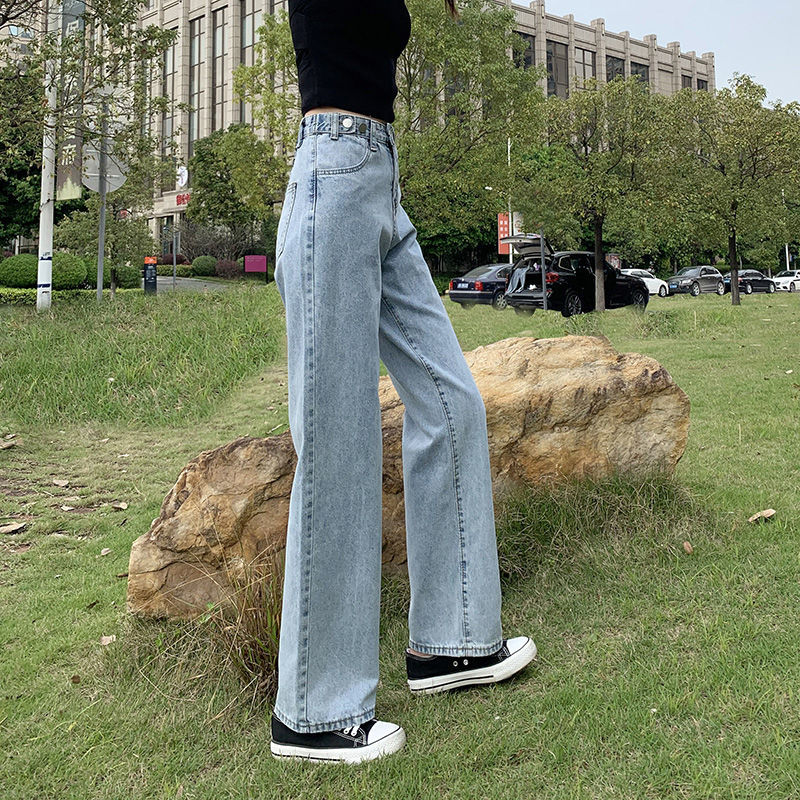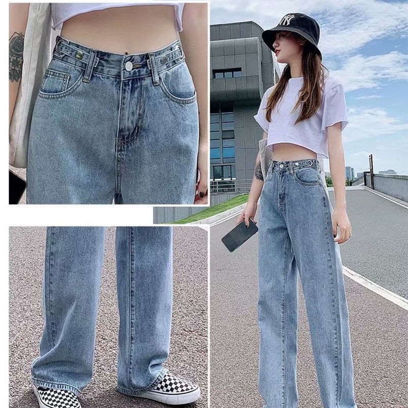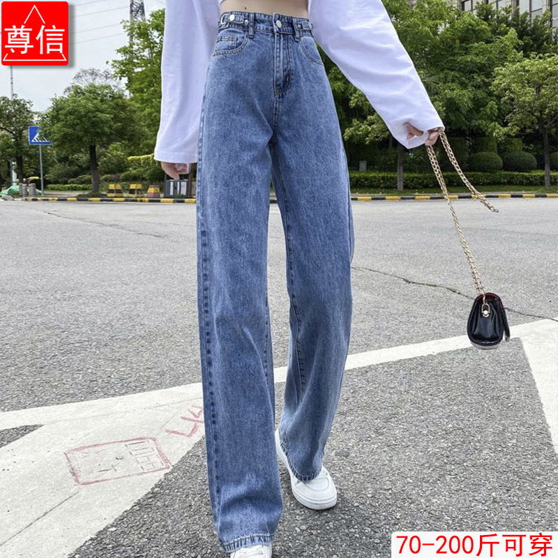 【OOTD批發】XS-2XL店長推薦!優選高腰闊腿牛仔褲 女大碼顯瘦寬鬆拖地長褲 可調節褲頭設計 高腰牛仔長褲 韓版