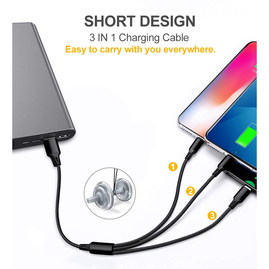 120W Usb Fast Charging Data Cable Universal 3 In 1 Multiple Usb Cord With ,Type-C, Micro