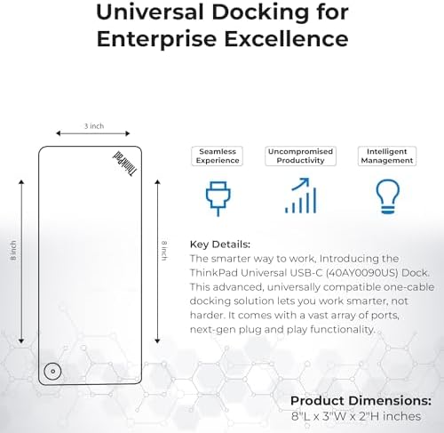 40AY0090US Lenovo Thinkpad Docking Station Dual Monitor Bundle - Supports 4K Display, Thinkpad Dock with AC Adapter + 4K HDMI Cable + 4K DisplayPort Cable + USB C Cable + Microfiber Cloth