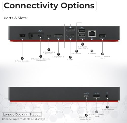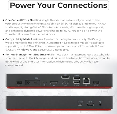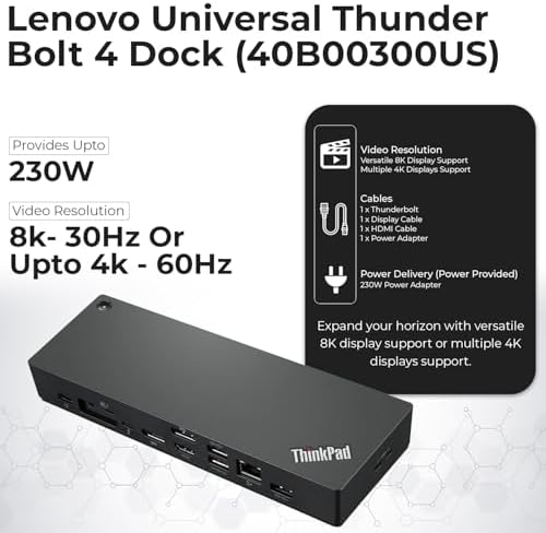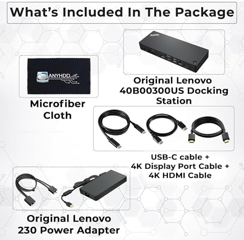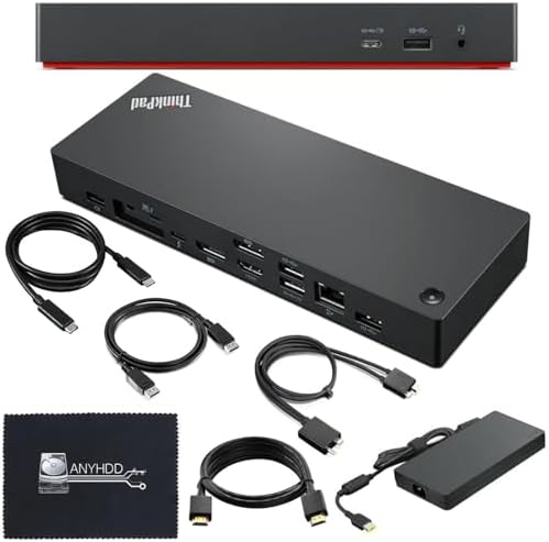 40B00300US Lenovo Docking Station USB C Bundle - 1 Year Warranty, Supports 4K Display, Thunderbolt 4 Dock with 300W Adapter + 4K HDMI Cable + 4K DisplayPort Cable + Thunderbolt Cable + Cloth
