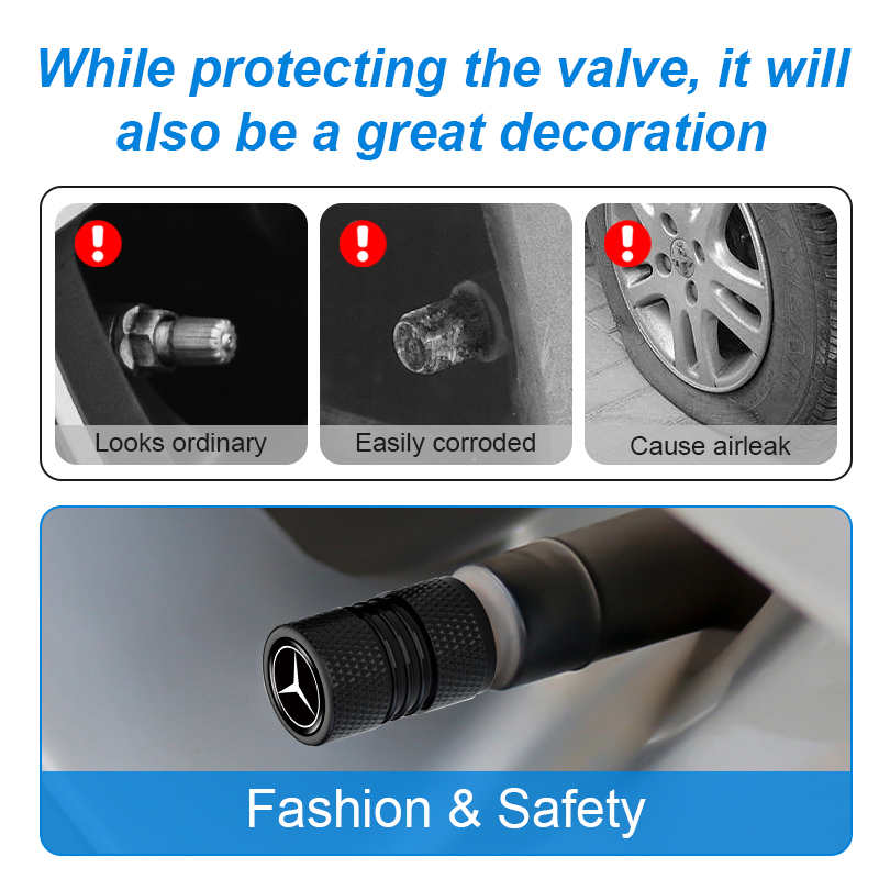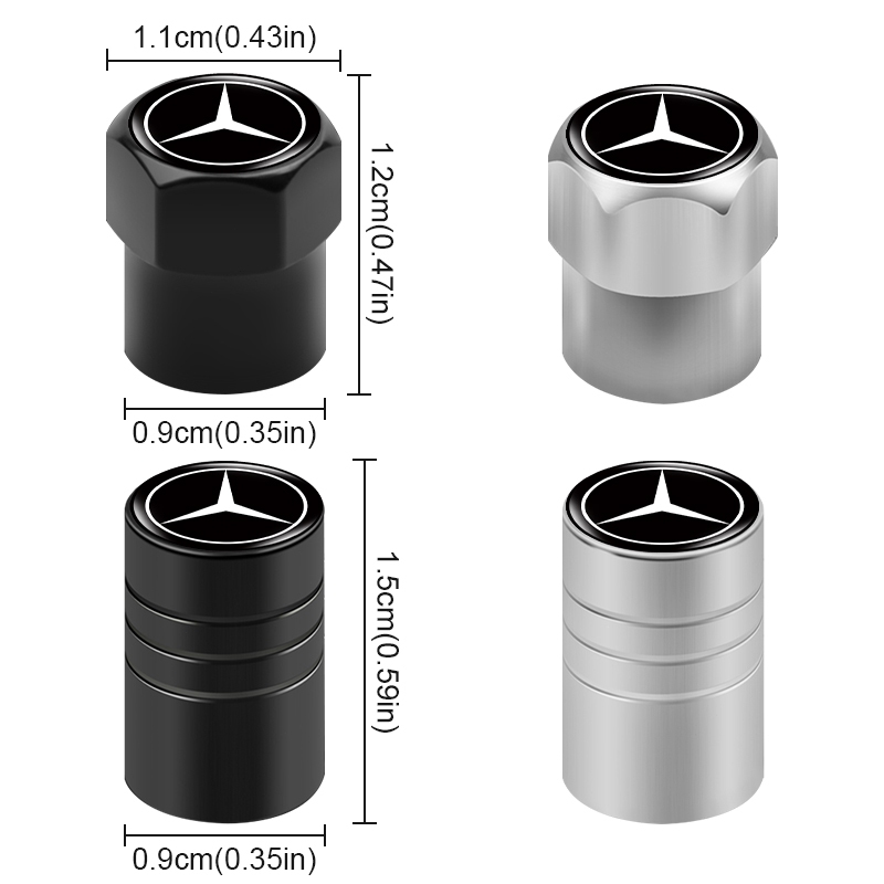4pcs Aluminium Alloy Car Tire Anti-leak Cap Double Threaded Styling Car Logo Wheel Valve Cover for Mercedes Benz Class W212 W211 W210 W203 W204 W205 CLA GLK CLS A C E