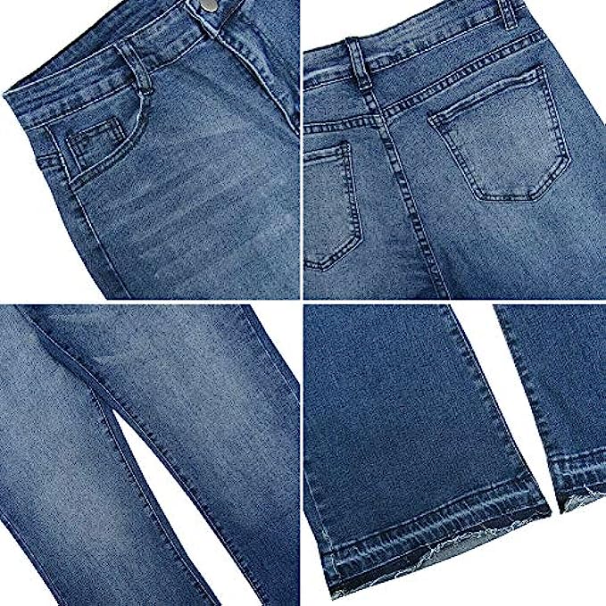 100% Cotton Destroy rip hole bootcut Jeans are cool design element show sexy bodycon curvy to highlights your charming figure Classic destructed hollow black flair jeans best choice to match with T-shirts,tops,shirts in your closet for modern fashion High rise straight slimming fit distressed hole bellbottoms jeans with frayed hem never out to catch crown eyes Denim stretchy soft fabric which lightweight flexible and breathable to relax and comfortable all time on party,shopping or travel Please refer to the size measurement in image before ordering.