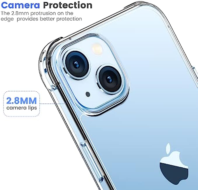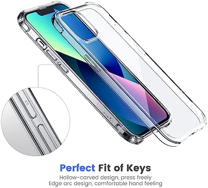 • Transparent and not-yellowing cover : Crystal Clear case for iphone 13 Using high-definition tpu and pc material, which effectively resist stains and sweat, not easy to get greasy and yellow over time,perfectly shows the original color of your phone.