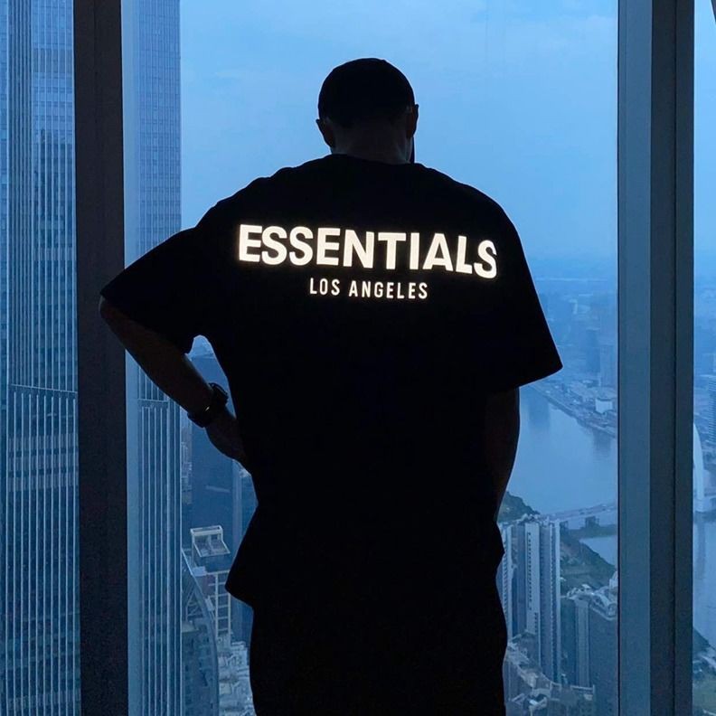 Reflective Letter Essentials High Street Loose Men and Women Short Sleeve T-shirt