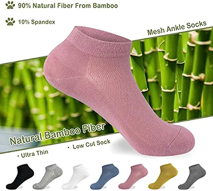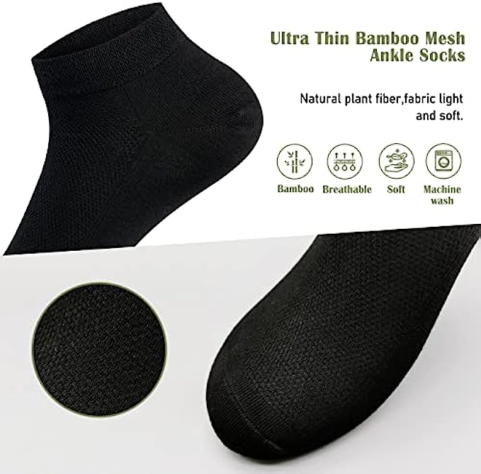 • Bamboo fiber fabric is light and soft, comfortable to wear.Natural plant fiber, adding a force to environmental protection! Breathable mesh ventilation and moisture management keep feet cool and comfortable. The smooth toe seam construction eliminates bulky seams to reduce fraying and prevent blisters.