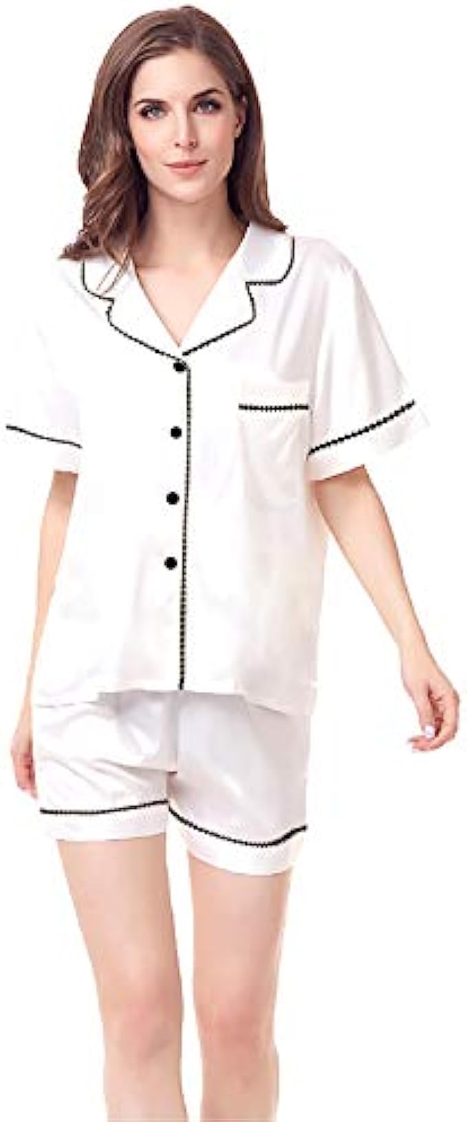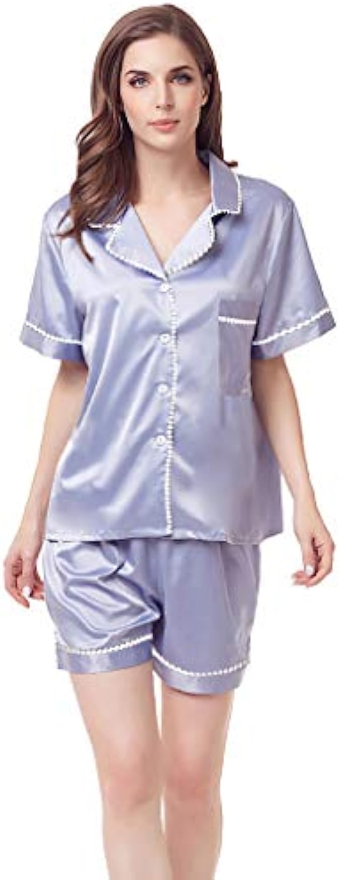• Applicable Occasions: Women's short-sleeved silk satin pajama set, suitable for daily wear and easy to match. Light weight and easy to carry. Comfortable, suitable for rest and sleep, slumber party, girls' day, bridal pajamas, indoor, living room, bedroom, hotel, workplace, travel, daily pajamas.