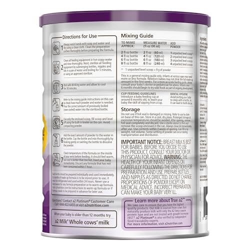 a2 Platinum® Premium Infant Formula for Babies Ages 0-12 Months, Whole Milk Powder-Based Formula with Iron, Nutritionally Complete, Made with Pure and Natural a2 Milk®, 31.7- oz Can, Pack of 6