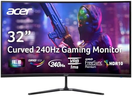 Nitro 31.5 Inch FHD 1920 x 1080 1500R Curved PC Gaming Monitor | AMD FreeSync Premium | 240Hz Refresh | 1ms VRB | VESA Mountable | HDR10 | One Display Port 1.4 & Two HDMI 2.0 | ED320Q X2bmiipx