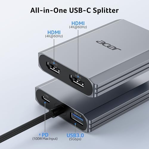 Sponsored Ad - USB C to Dual HDMI Adapter 4K@60Hz, 4-in-1 USB C Hub Multiport Adapter with 100W PD, USB 3.0, Docking Station Dual Monitor, Compatible with Acer, MacBook Air/Pro, Dell XPS, HP, etc