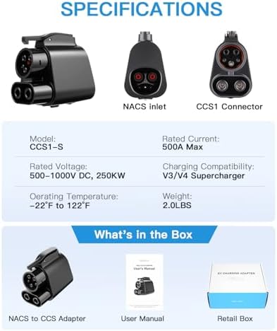 Sponsored Ad - 2025 NACS to CCS1 Adapter, 500A/1000V fit for V3/V4 Tesla Supercharger, Nacs DC Adapter Compatible with Ford, Rivian, GM, Volvo, Polestar, Hyundai, Lucid, Kia, Genesis CCS1 EVs