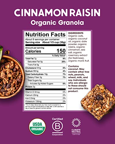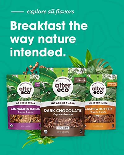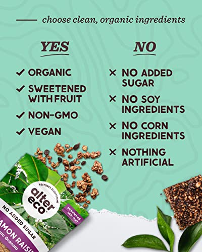 Alter Eco Cinnamon Raisin Granola, Healthy, Organic Breakfast & Snack, Naturally Sweetened with Fruit, Vegan, No Artificial Sugars or Additives, Regeneratively-Farmed Oats (Cinnammon Raisin - 1 Pack)