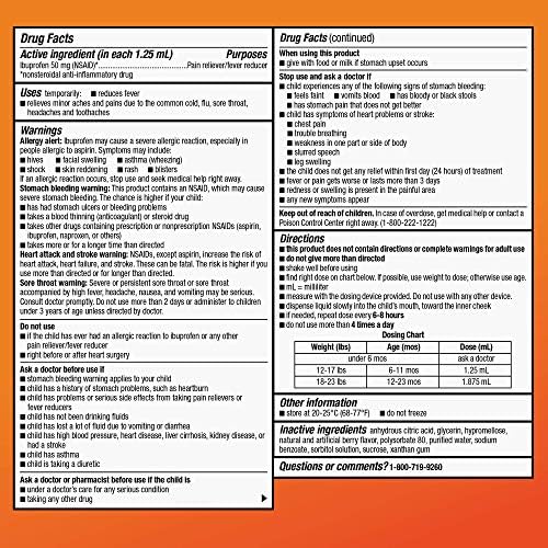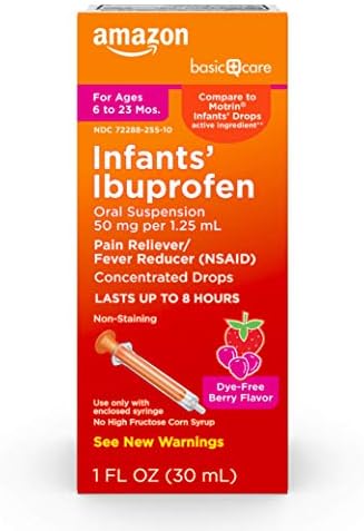 Amazon Basic Care Infants’ Ibuprofen Oral Suspension, 50 mg/1.25 mL, Berry Flavor Concentrated Drops, Dye-Free, 1 fl oz (Pack of 1)