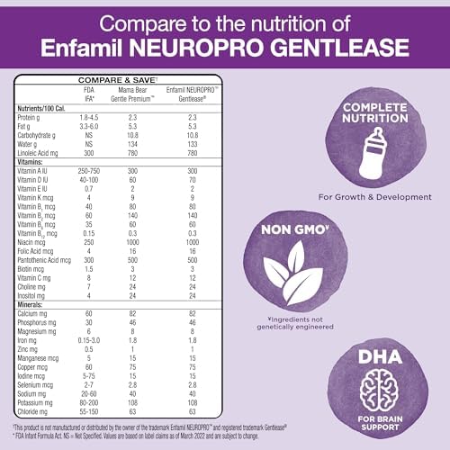 Amazon Brand - Mama Bear Gentle Premium Baby Formula Powder, DHA for Brain Support, Immune Blend 6, 2'FL HMO, For Fusiness, Crying & Gas, 33.2 Ounce (Pack of 1)