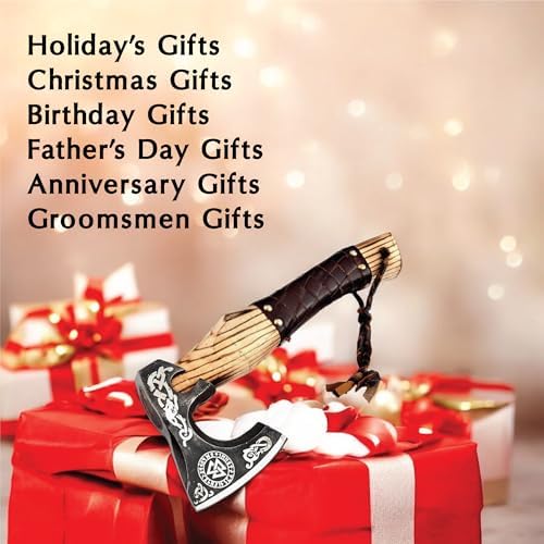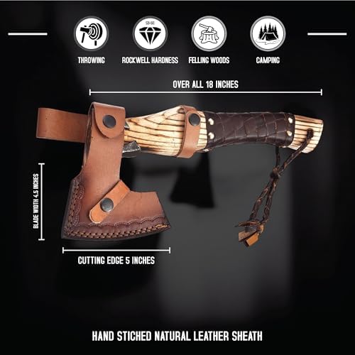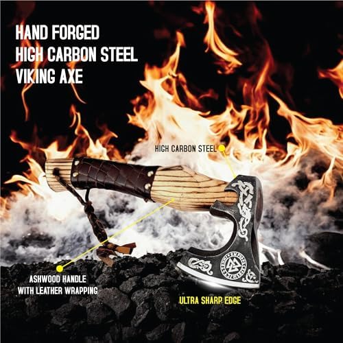 Sponsored Ad - Viking Axe Ashwood Handle Handmade Carbon Steel Blade, Outdoor Camping Hunting, Norse Hatchets Axes, with Leather Wrapped Handle & Leather Sheath Wood Splitting Axes