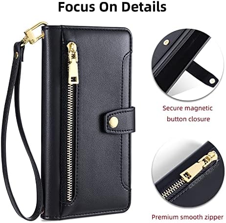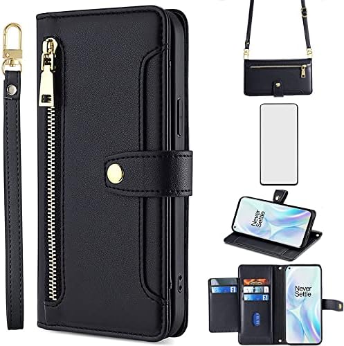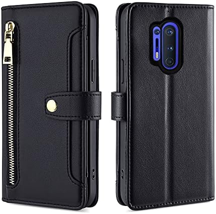 Phone Case for OnePlus 8 Pro One Plus 8Pro 5G Wallet Cover and Screen Protector Zipper Credit Card Holder Slot Kickstand Flip Cell Accessories On 1Plus 1 + Plus8 1+ OnePlus8Pro Women Men Black