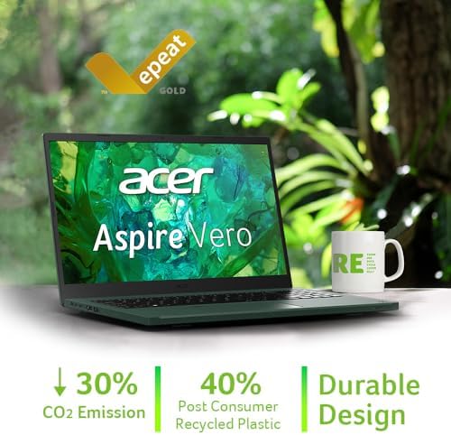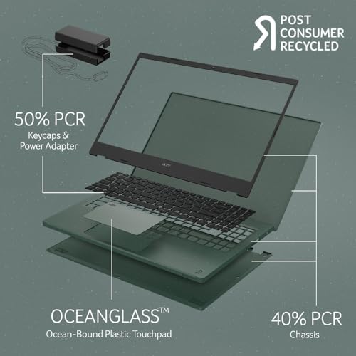 Aspire Vero AV15-53P-77V9 Intel Evo Green PC | 15.6" FHD IPS 100% sRGB Display | Intel Core i7-1355U | Intel Iris Xe Graphics | 16GB LPDDR5 | 512GB Gen 4 SSD | Killer Wi-Fi 6E | PCR Materials