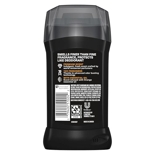 AXE Fine Fragrance Collection Deodorant Stick Black Vanilla with Orange + Sandalwood Essential Oils 4 Pack with 72H Freshness Aluminum-Free 3 oz
