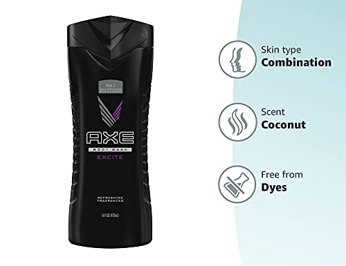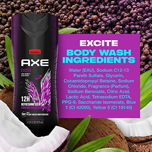 AXE Body Wash 12h Refreshing Scent Excite Crisp Coconut and Black Pepper Men's Body Wash with 100 percent Plant-Based Moisturizers 16 oz