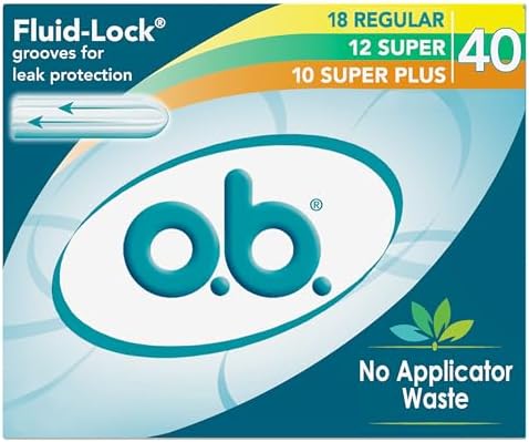o.b. Tampons No Applicator, Fragrance-Free - 40ct (18ct Regular/12ct Super/10ct Super Plus) | Applicator-Free Tampons Multipack, Feminine Care, ob Tampon Multipack, Period Products