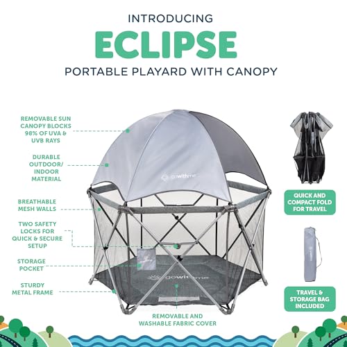 Baby Delight Go with Me Eclipse Deluxe Portable Playard | Playpen | Sun Canopy | Indoor and Outdoor | Ultra Padded Nylon Floor | Elephant Grey
