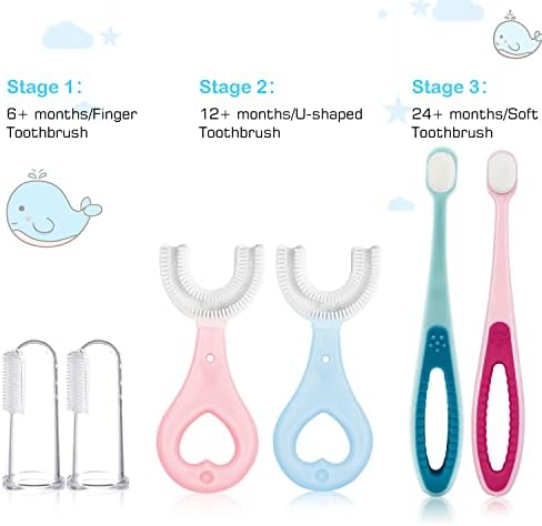 6 in 1 Baby Training Toothbrush Set - Infant to Toddler Toothbrush Oral Care Toothbrush - Food Grade Silicone,Extra Soft Bristles,Perfect for 6+,12+,24+ Months