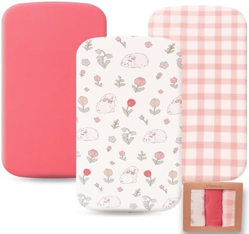 100% Jersey Cotton Bassinet Sheets 20"x33" Fits Baby Delight, Fodoss, Dream On Me Skylar and Most Rectangle Bedside Sleeper, Super Soft Breathable Fitted Sheets, 3 Pack, Pink