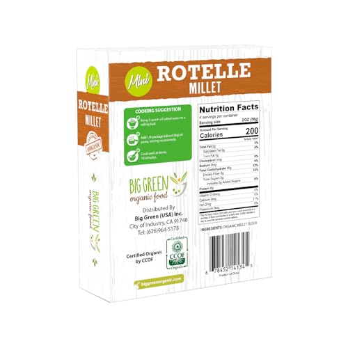 Big Green Organic Food - Organic Mini Millet Rotelle Pasta, Gluten-Free, Non-GMO, Vegan, Plant-Based, Kids' Favorite, 8.8 oz (3 Boxes)
