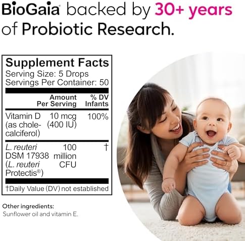 Protectis Baby Probiotic Drops | Colic & Gas Relief + Vitamin D | Safe for Newborns | Ease Crying, Fussing, Colic, Gas, Spit-ups & Constipation | No Dairy, Soy & Gluten | 50 Day Supply | 10mL