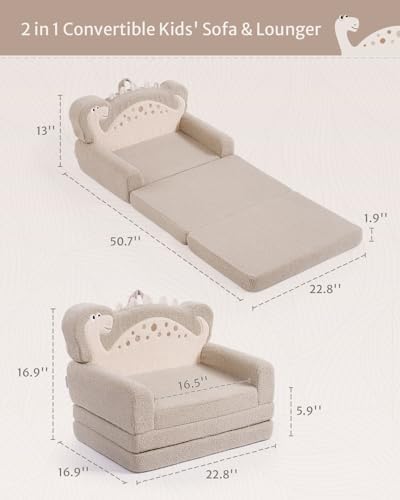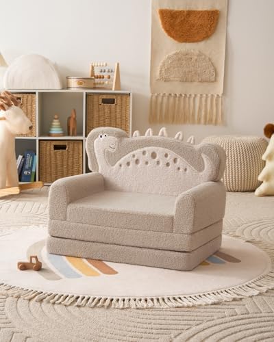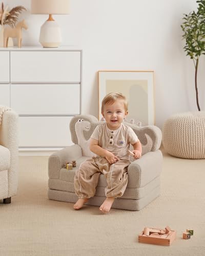 Blissful Diary Foldable Toddler Couch, 2-in-1 Comfy Toddler Chair & Lounger for Reading, Nap, Playroom, Kids Couch Sofa for 1 2 3+ Year Old Girls Boys Baby Birthday Gift, Gray Shell
