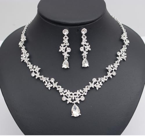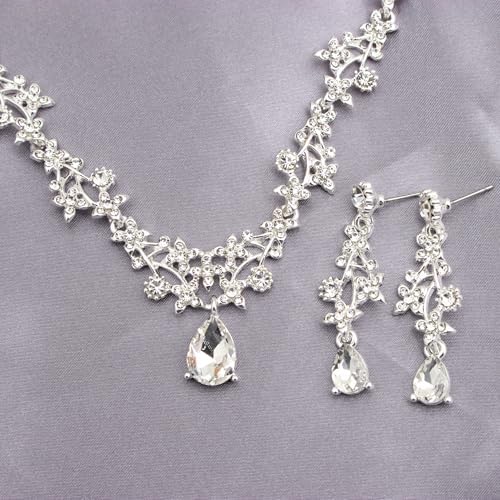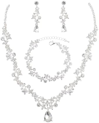 Women’s Brides Bridesmaid Jewelry Set Austrian Crystal Teardrop Elegant Necklace Dangle Earrings Link Bracelet Wedding Prom Costume Party Events Evening Dress