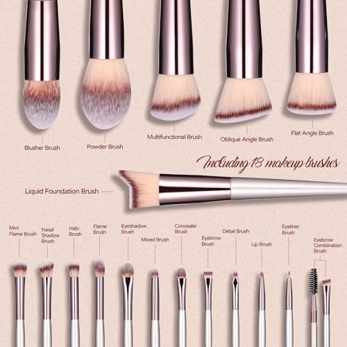 Makeup Brush Set 18 Pcs Premium Synthetic Foundation Powder Concealers Eye shadows Blush Makeup Brushes with black case