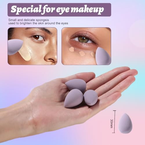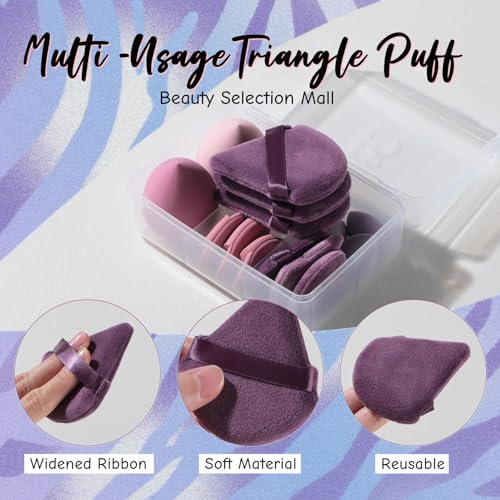 Makeup Sponge Set BS-MALL Triangle Puff 14 Pcs for Liquid, Cream, and Powder, Multi-colored Makeup Sponges and Mini Sponge with Case (A-Purple)