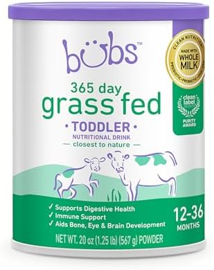 Bubs 365 Grass Fed Toddler Nutritional Drink, Non-GMO Whole Milk-Based Formula, for Kids 12-36 Months, 20 oz