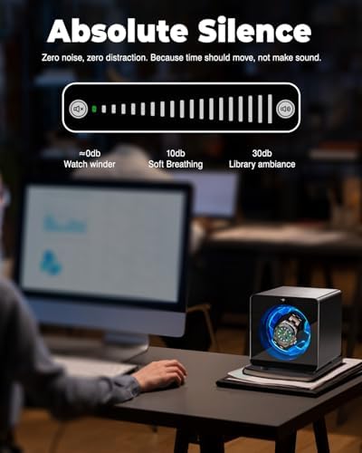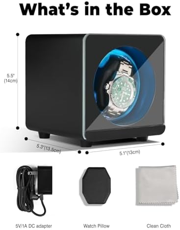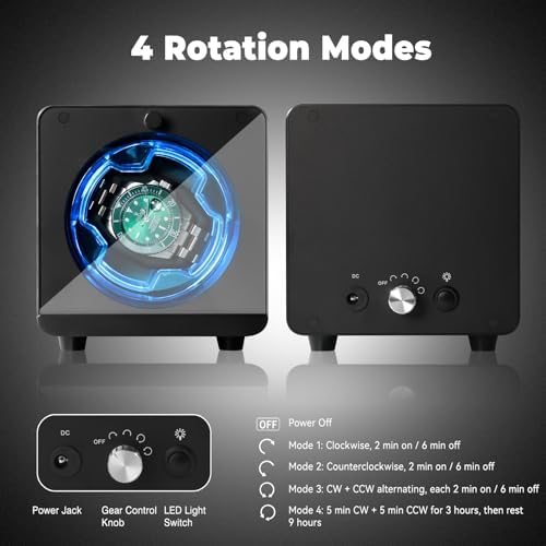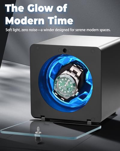 Cevale Single Watch Winder,Aluminum Automatic Watch Winder for Rolex with Ultra Quiet Motor(≈0dB),Self-Winding Metal Watch Winder for Every Watches,Blue Light,Gift for Watch Lovers