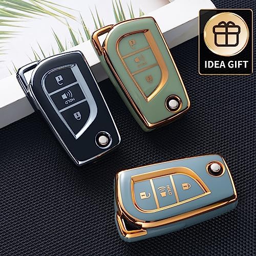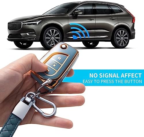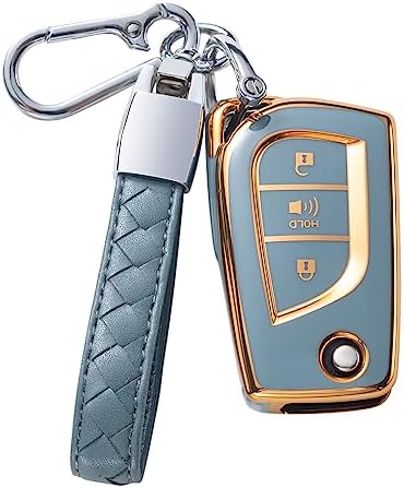 for Toyota Key Fob Cover with Leather Lanyard, Car Key Case Shell Protection for Toyota Avalon Camry Corolla RAV4 Smart Remote Control Protector,Blue C