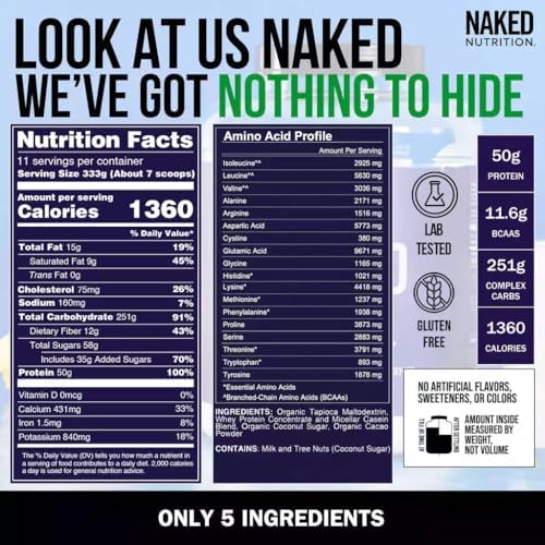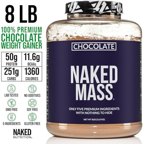 NAKED Chocolate Mass Gainer - All Natural Weight Gainer Protein Powder - 8lb Bulk, GMO Free, Gluten Free & Soy Free. No Artificial Ingredients - 1,360 Calories