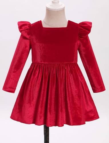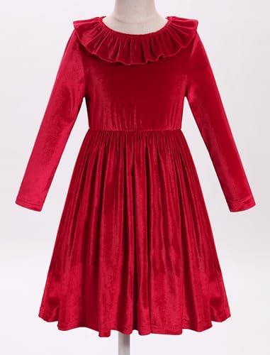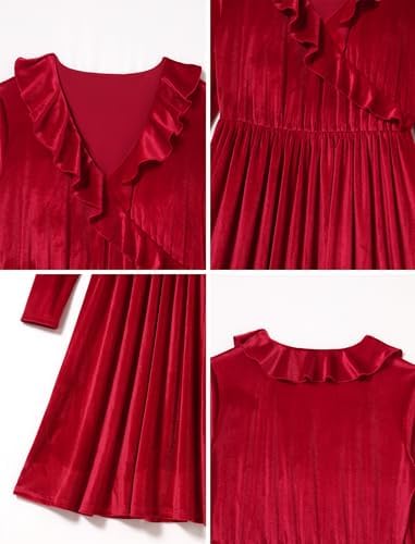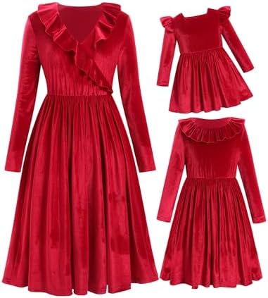 AWIBMK Mommy and Me Dresses V Neck Solid Color Velvet Ruffle Christmas Dress Long Sleeve Xmas Party Family Matching Outfits