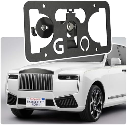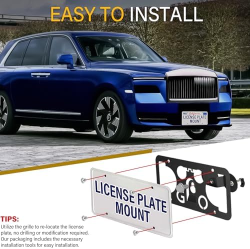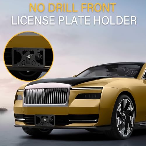 No Drill License Plate Holder Compatible with Rolls-Royce Cullinan 2019-2023 Front Grille License Plate Mount Bumper Bracket Holder Car Tag Frame Anti-Theft Adapter Accessories