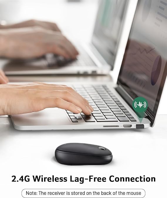 Computer Mouse Wireless, 2.4G Slim USB Wireless Mice with USB-A Receiver, 1600 DPI Optical, Laptop Mouse with Plug and Play for Right/Left Handed Users (for Chromebooks, Windows PC & Mac) Black