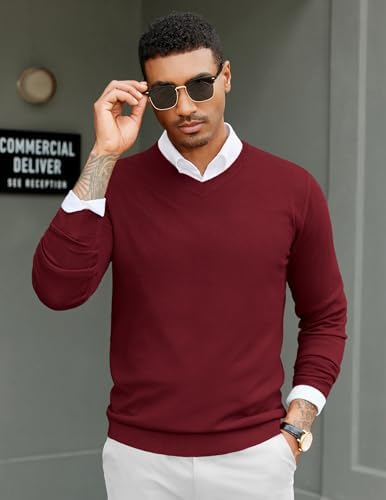 Sponsored Ad - Men Casual V Neck Sweater Ribbed Knit Slim Fit Long Sleeve Pullover Top