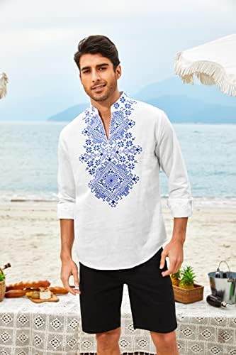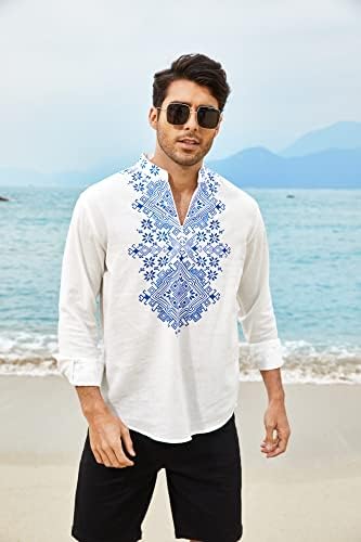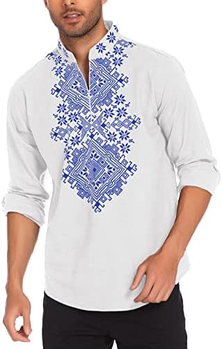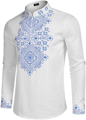 Sponsored Ad - Men's Henley Shirt Vyshyvanka Long Sleeve African Print Shirts Casual Zip Up Cotton Linen Beach Hippie Shirt
