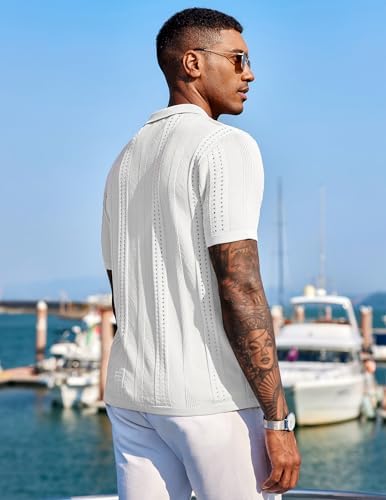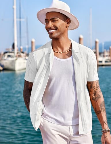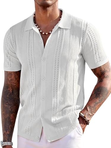 Men's Knit Shirts Short Sleeve Button Down Polo Shirt Fashion Casual Summer Beach Shirts