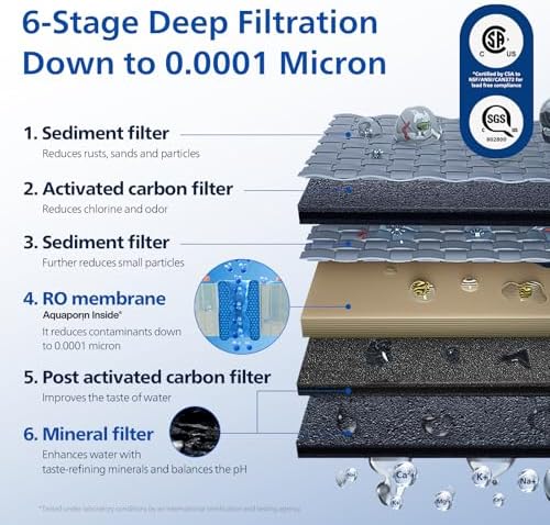 Reverse Osmosis Water Filter Countertop, 6 Stage RO System Water Filtration Purifier with Aquaporin Inside Remineralization and 2 Portable Pitchers, NSF/ANSI 372 Certified, Reduce TDS Lead