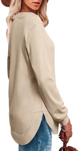 Sponsored Ad - OFEEFAN Womens Sweatshirt Crewneck Long Sleeve Shirts High Low Tops Curved Hem