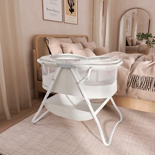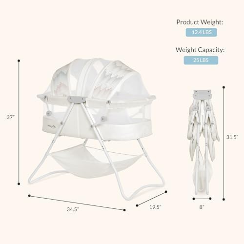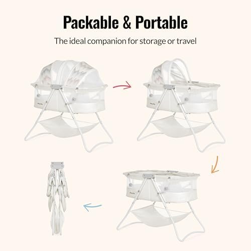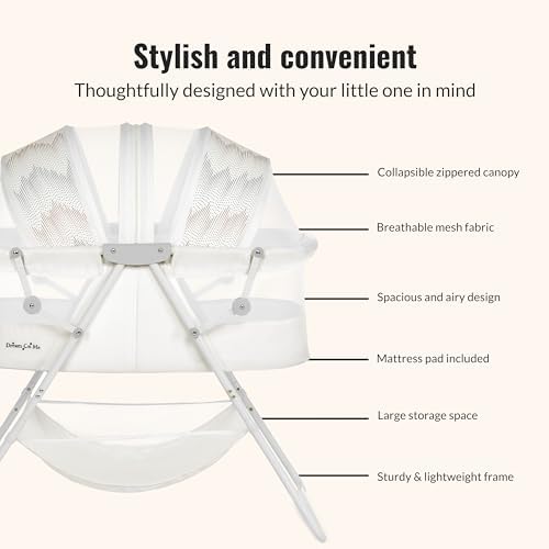 Sponsored Ad - Dream On Me Karley Bassinet in Dove White, Lightweight Portable Baby Bassinet, Quick Fold and Easy to Carry, Adjustable Double Canopy, Indoor and Outdoor Bassinet with Large Storage Bas