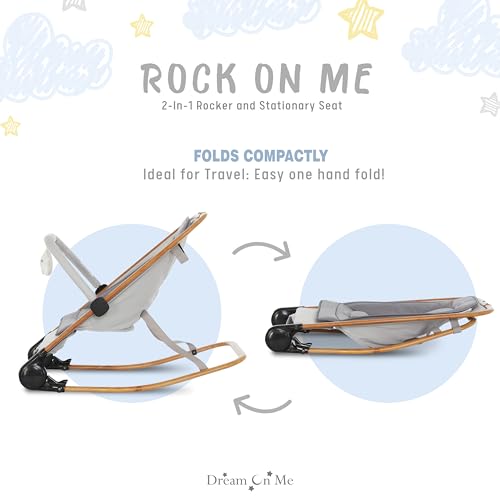 Dream on Me Rock with me 2-in-1 Rocker and Stationary Seat | Compact Portable Infant Rocker with Removable Toys Bar & Hanging Toys in Grey