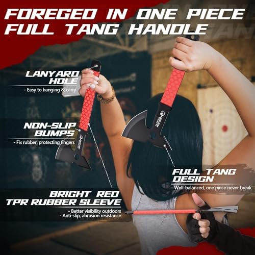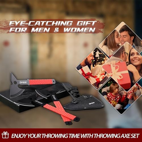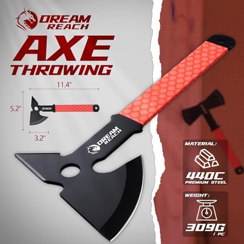 Dream Reach Throwing Axe Set - 3PCS Full Tang Throwing Hatchets with TPR Rubber Sleeve and Protective Sheaths for Recreation and Competition
