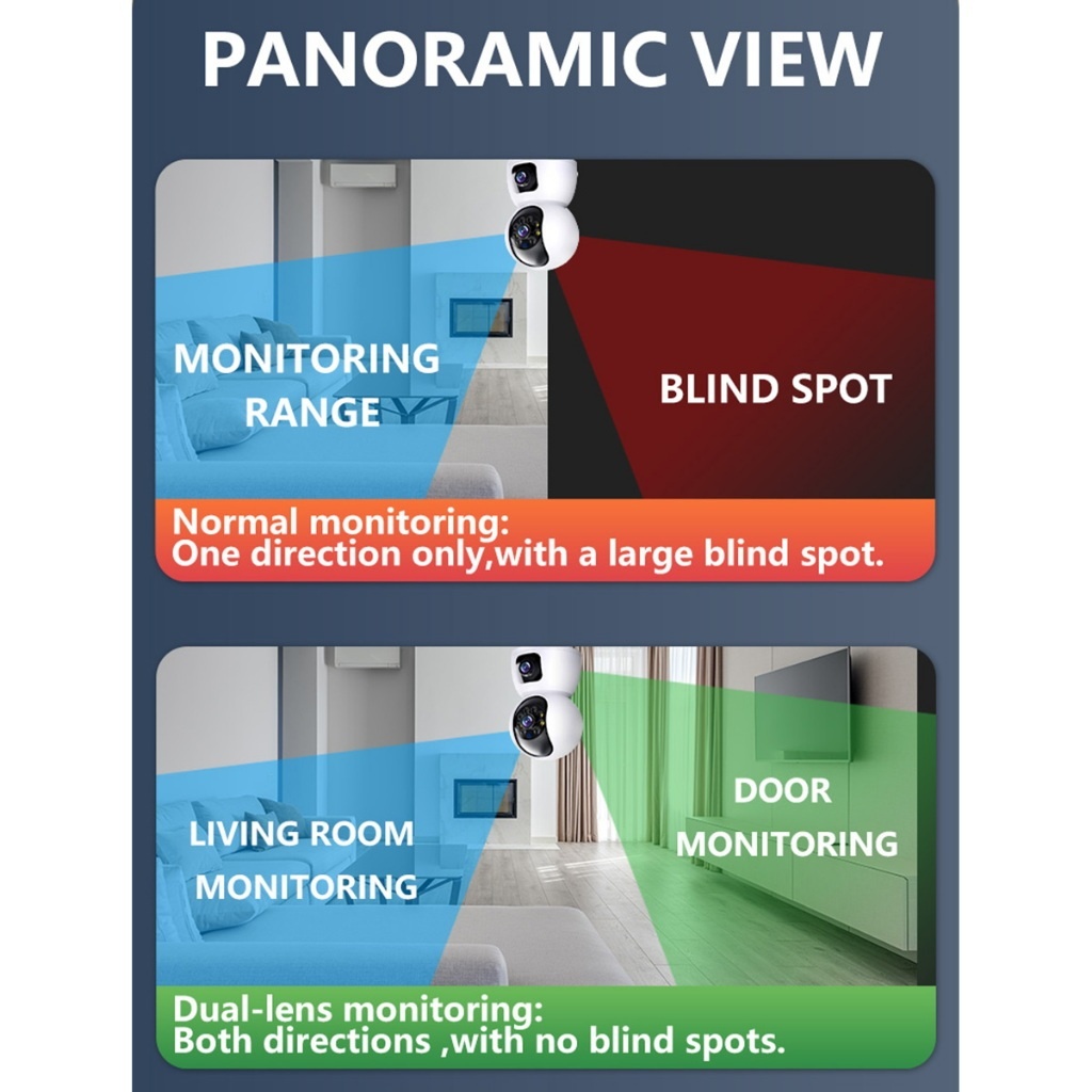 Dual Lens -dual screens CCTV home security camera  Indoor 3MP 2K Two Way Talking Camera Phone Control Built-in Microphone