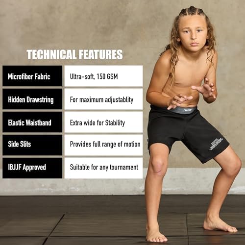 Sponsored Ad - Kids MMA BJJ No GI UFC Grappling Shorts, Sports Shorts for Boys & Girls, Youth Jiu Jitsu Training Shorts Black
