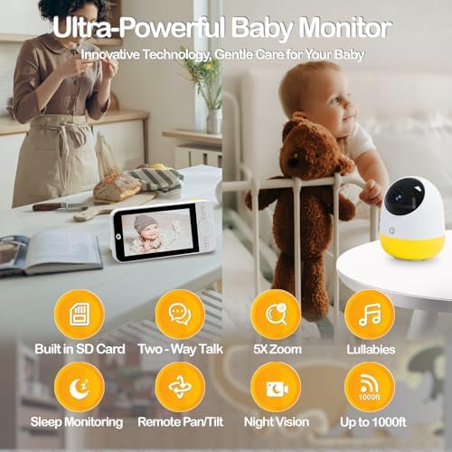 Sponsored Ad - Ellie Pro Baby Monitor with Camera and Audio,5'' IPS 2K UHD Resolution,6000mAh Battery, Remote Pan-Tilt-5X Zoom, 2-Way Talk,No WiFi, Night Vision, Virtual Fence 24hr Play Back and 1000f